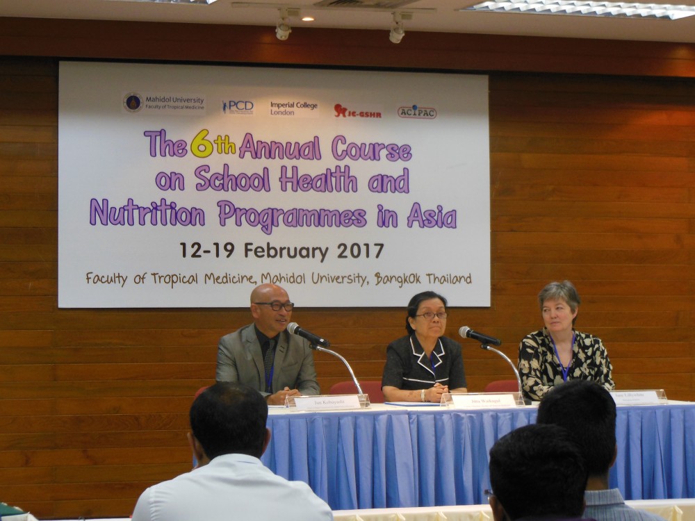 2017年2月12-19日までタイ・マヒドン大学熱帯医学部ACIPACにおいて国際学校保健コンソーシャムとPCDのサポートによって開催されました。東チモールからシェアの学校保健プロジェクト関係者、南アジア地域(ネパール、インド、パキスタン、バングラデッシュ)、カンボジア、エチオピアからSave Childeren Fund, WFP 各国政府関係者が参加し、学校保健の政策マネージメントについて学び、各国の経験をシェアしました。今年は災害対策に大きくクローズアップされ、JICAの支援で日本に研修にいきそのあと自助努力で災害対策のモデル校をつくりあげた学校を訪問しました。教室からは小林・児玉がTeaching Staff として参加し、博士課程のAmiel さんが参加し大きな学びになったようです。